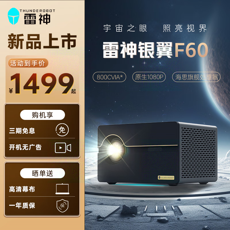 雷神银翼F60:1499元高亮智能投影,1080P高清便携游戏神器,打造家庭影院新体验