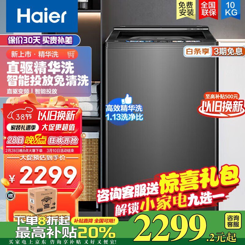 海尔MB100-BDEF668云溪系列:10公斤大容量免清洗变频洗衣机,智能高效,美观耐用的洗衣生活新选择