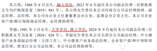 苏占伟出生于1966年6月,今年59岁,年纪不小了。据太保财险官网披露,苏占伟拥有硕士学位,未披露其第一学历是什么。相较之下,太保财险其他高管简历介绍大多为“大学学历,硕士学位”的格式,这不禁让人对苏占伟的学历产生好奇。