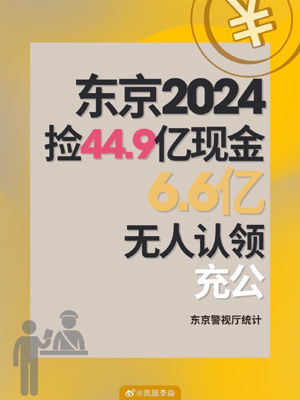 2024年,东京警视厅统计,捡到并上交给警察的现金,竟然高达约45亿日元,创下历史新高。
