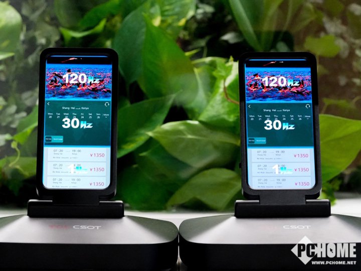 在已有设备之外,TCL华星还展示了两块针对手机打造的屏幕。第一款是全球首款最低驱动功耗OLED手机屏 (6.36"),最大的优势就是低功耗,率先在GOA区域引入IGZO,CMOS GOA电路实现分区分频功能,120Hz高刷功耗降低 7.9%,分区分频模式功耗降低13.2%,10Hz功耗降低9.8%。结合其尺寸来看,这无疑就是为现在正火的小屏旗舰所准备的,在更低功耗的支持下,有助于小屏手机的续航提升,甚至能推动更薄手机的发展。