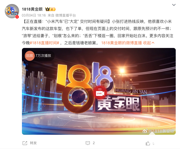 近日,据1818黄金眼报道,米粉小张打进热线反映了他在购买小米SU7 Ultra过程中遇到的困扰。