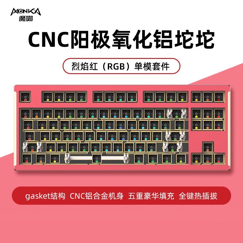 魔咖MONKA6087铝坨坨机械键盘87键Gasket结构RGB背光