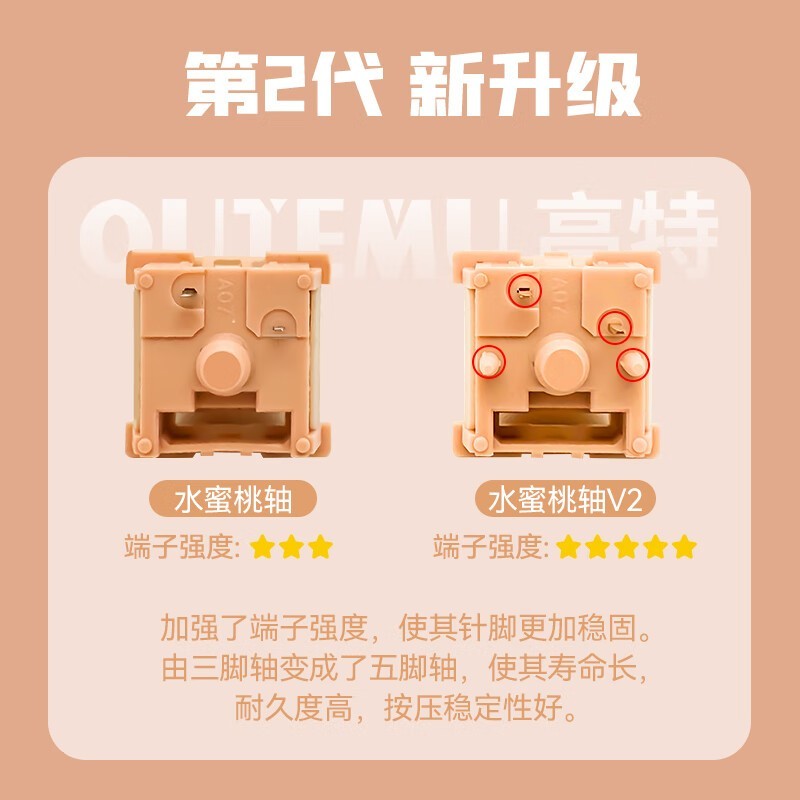 高特水蜜桃轴V2机械键盘轴体开关水果轻声系静音高效舒适