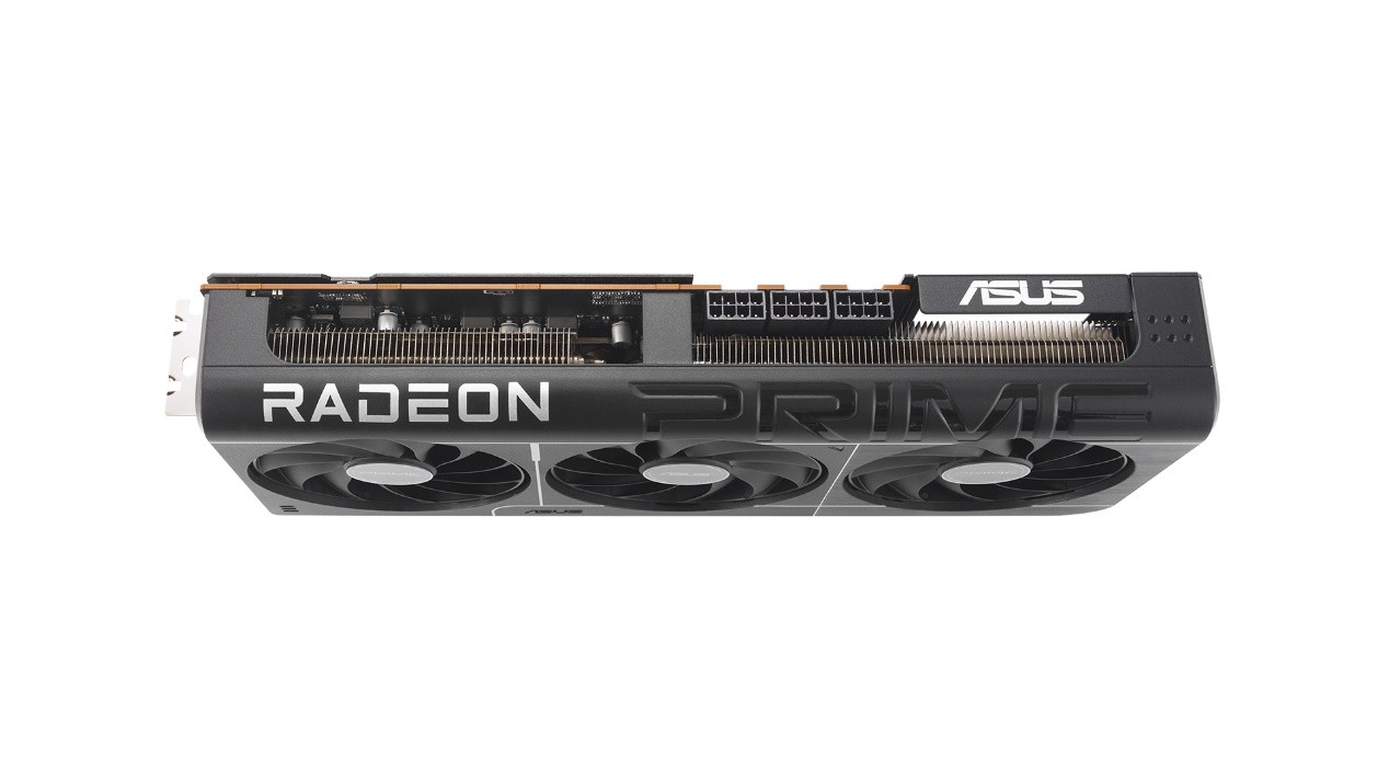 PRIMERX9070XT/9070大师显卡的外观采用了纯黑磨砂质感涂装,显卡造型比较方正,没有特别夸张的线条设计,整体风格属于低调耐看的类型,转角处采用了圆角过渡设计,导流壳上面有白色条纹点缀,侧边还有阴刻亮面的PRIMELogo,增加了显卡的视觉层次感。