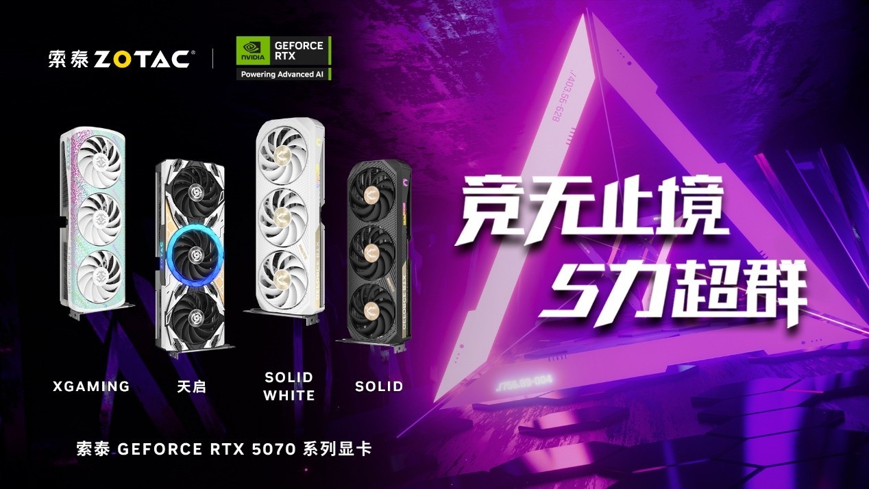 索泰GeForceRTX 5070 显卡将在3月5日晚22:00正式上架。首批上市的型号为4599元MSRP价格的索泰GeForceRTX 5070 XGAMING,以及非公型号RTX5070 XGAMING OC和RTX5070 SOLID OC,而白色的RTX5070 天启OC和RTX5070 SOLID OC WHITE也将在后续上市。