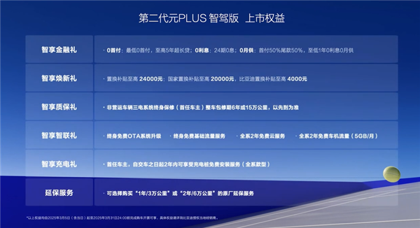 快科技3月5日消息,刚刚,第二代比亚迪元PLUS智驾版上市,共推出5款配置车型,售价区间11.58-14.58万元。