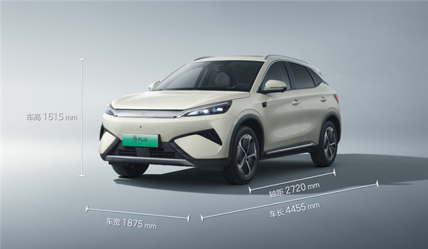 新车定位于A级纯电SUV,长宽高分别为4455*1875*1615mm,轴距2720mm,侧裙、C柱的镀铬装饰都有优化,同时换装全新的轮圈,提供17和18英寸两种规格,尾灯点亮效果类似于中国结,后包围同样重新设计,展现出跨界元素。