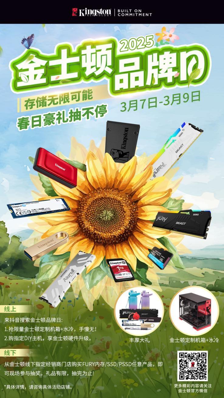 在春意盎然的3月,全球知名存储品牌金士顿宣布,将于3月7日至3月9日期间,在全国范围内的金士顿70余家线下优选装机店面举办盛大的品牌日活动。此次活动旨在回馈广大消费者对金士顿存储产品的厚爱与支持,让消费者在享受高品质存储产品的同时,还能体验到更多的惊喜与乐趣。
