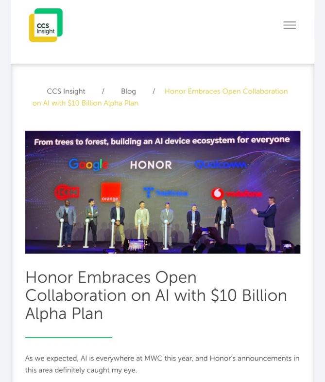 从全球媒体的广泛赞誉,到市场调研机构数据的有力佐证,再到产业合作伙伴的积极响应,荣耀正逐步构建起一个庞大且极具活力的 AI 终端生态体系。这片蓬勃发展的“生态森林”,以其开放、多元的特性,正日益展现出强大的生命力与竞争力。它犹如一颗投入AI时代湖面的石子,激起的涟漪正在全球科技圈不断扩散。