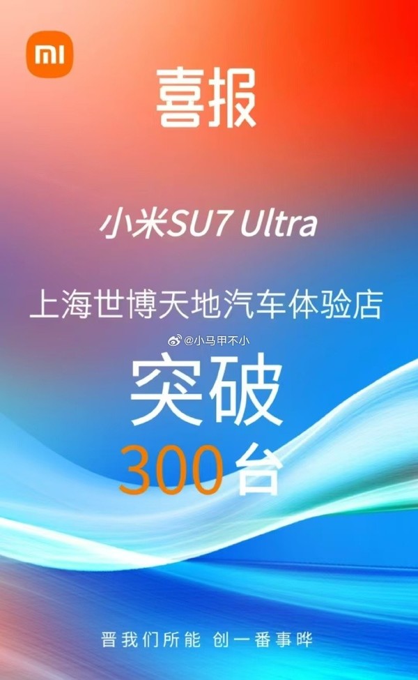 上海一门店卖出300台小米SU7 Ultra 销售额达1.6亿!