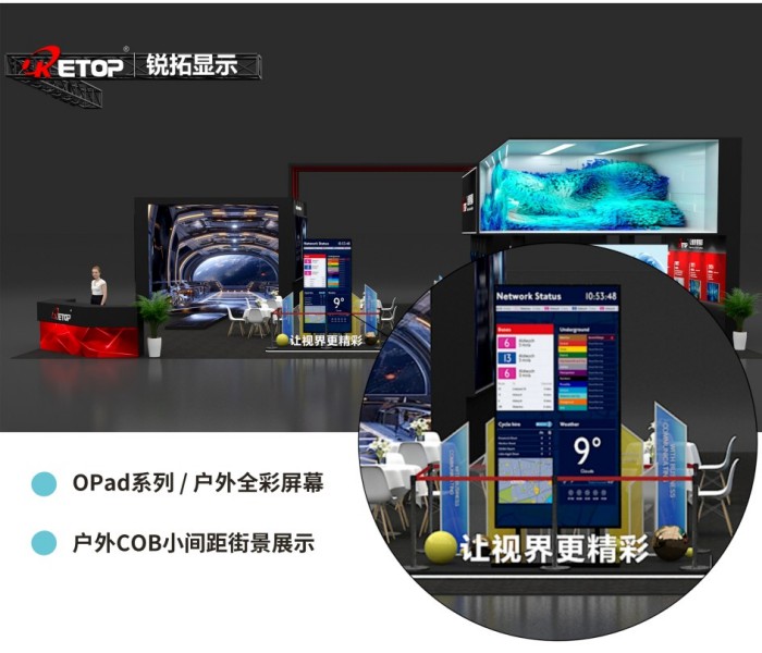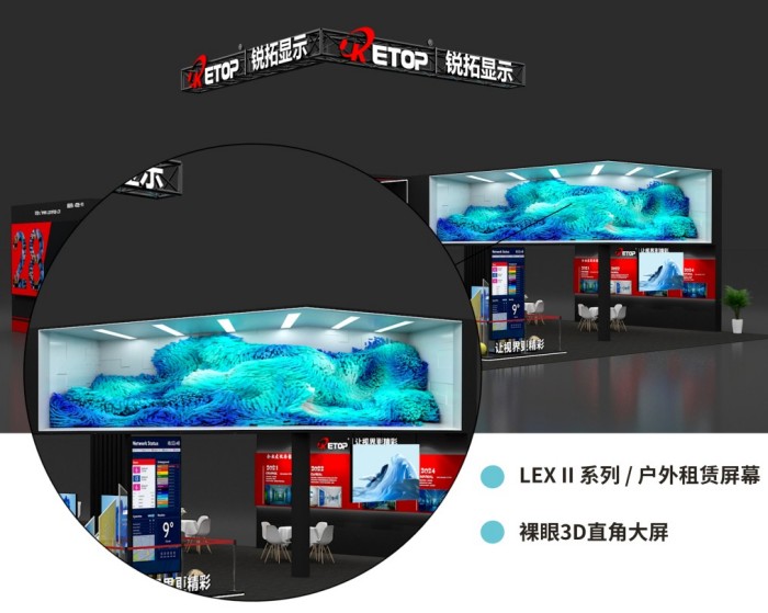 锐拓显示精心布局七大展示区,涵盖裸眼3D、户外吊装租赁、沉浸式互动、智慧会议、户外街景广告、体育场馆以及手动操作样品区等多个领域,全场景LED解决方案将在ISLE深圳盛会上闪亮登场。