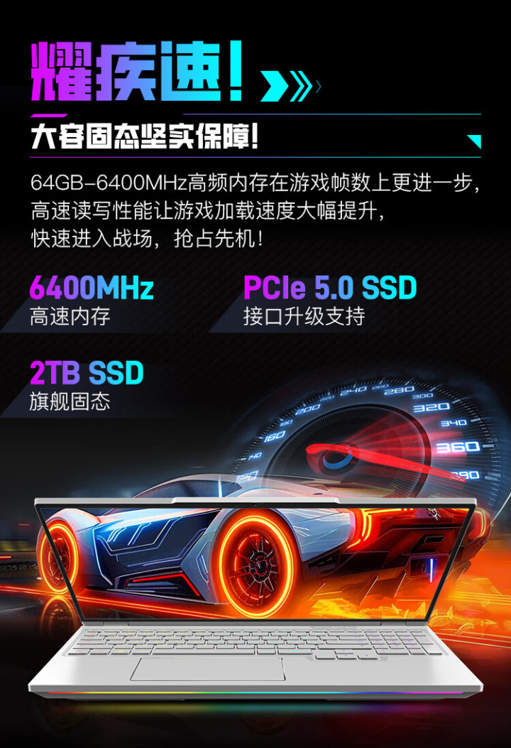 显示屏的效果直接关乎玩家们的视觉体验,机械革命耀世16 Ultra采用16英寸专业原色屏,Mini LED背光最高亮度可达1200尼特,分辨率达到2.5K(2560*1600),300Hz超高刷新率让你尽享高速FPS游戏的畅快。覆盖100% DCI-P3色域,出厂前经过校色,最小色彩偏差ΔE小于1,带来巅峰级色彩表现。其它配置方面,耀世16 Ultra标配64GB DDR5 6400 MT/s高频内存+2TB固态硬盘,可以说是存储大满足的豪华配置,加载上百GB容量的大型游戏也不用太多等待,同时还预留了PCIe 5.0扩展位,为未来升级留下空间。