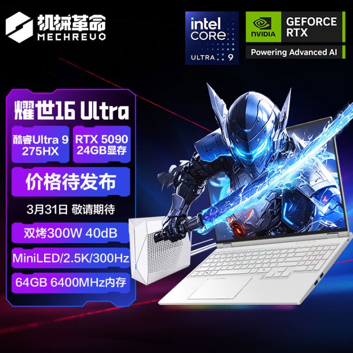 机械革命旗下备受期待的旗舰级游戏本耀世16 Ultra采用酷睿Ultra 9+RTX 5090的强大配置,拥有300瓦的整机性能释放,是许多游戏玩家们的梦想利器,即将于3月31日正式发布。