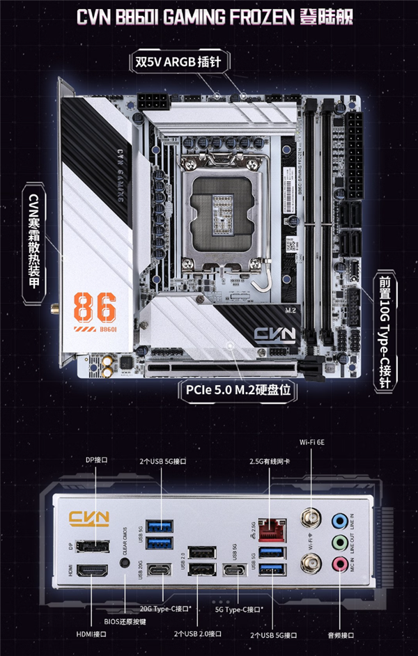 顺带一提,七彩虹还有款Intel平台的迷你小板CVN B860I GAMING FROZEN V20,目前售价1199元。