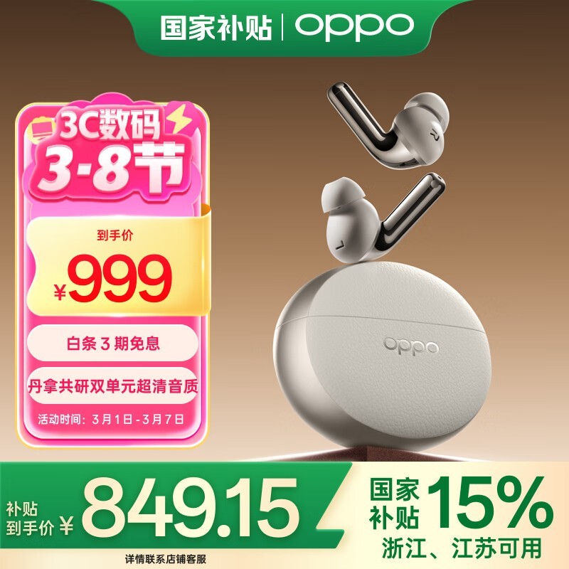 OPPO Enco X3真无线耳机米白色蓝牙耳机京东活动价999元到手760元