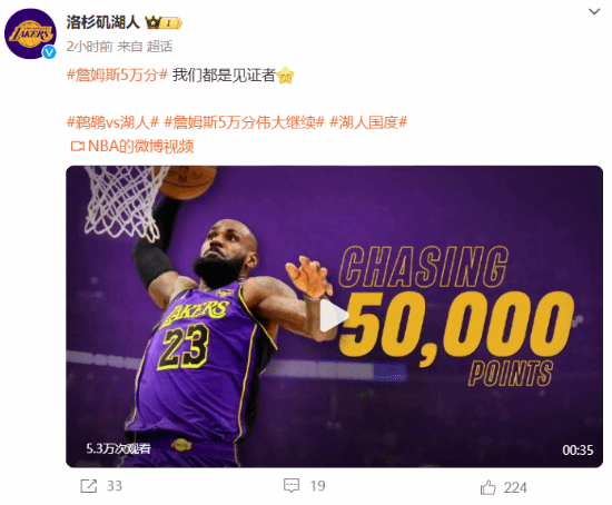 而通过这粒进球,詹姆斯顺利拿下了自己职业生涯(常规+季后)的第50000分,达成了自己以及全联盟的里程碑式成就,他也就此成为NBA历史上第一位50000分先生。