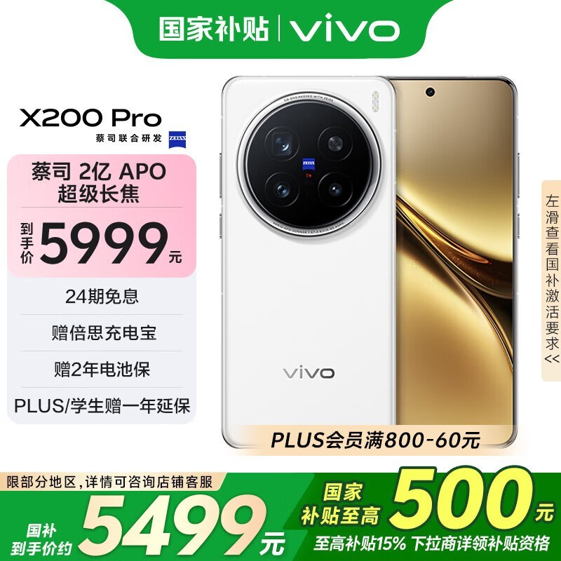 vivo X200 Pro 5G手机白月光 16GB+512GB 京东特惠5169元