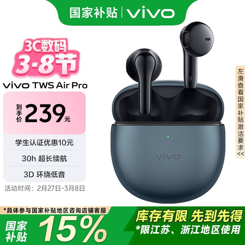 vivo TWS Air Pro蓝牙耳机京东促销低至181元