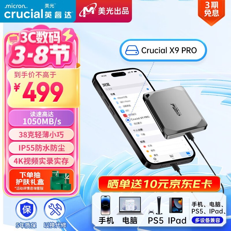 Crucial美光X9 Pro移动硬盘1TB京东促销