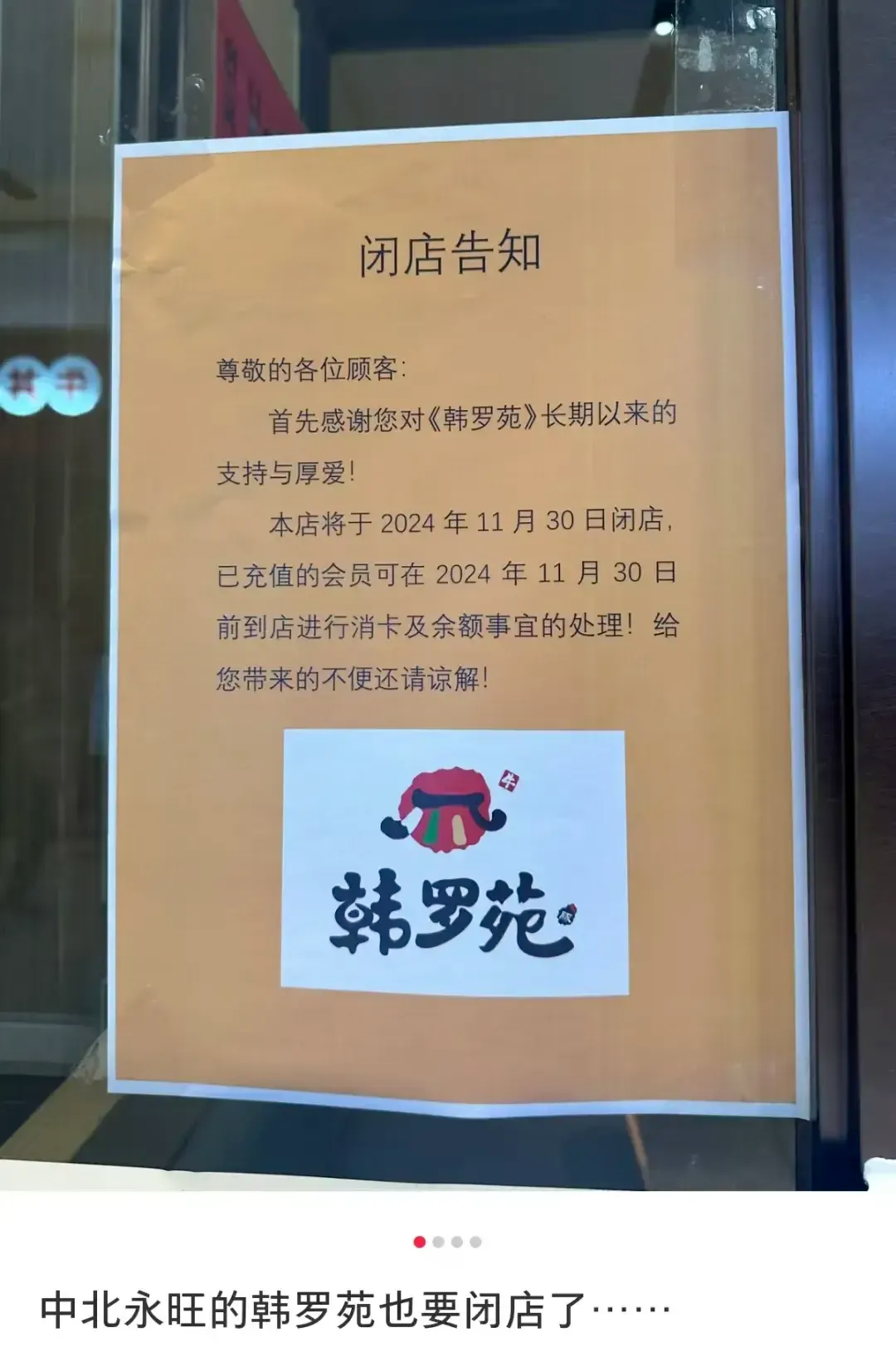 另外一部分老网红却正在接连闭店。前不久,内参君在《韩国烤肉“鼻祖”们,正在接连倒闭》一文中提及,姜虎东白丁烤肉在全国其他城市的门店出现了倒闭停业的情况;曾在天津经营20年的韩式烤肉品牌“韩罗苑”,去年12月底,其最后一家位于天津中北永旺的门店正式关闭。