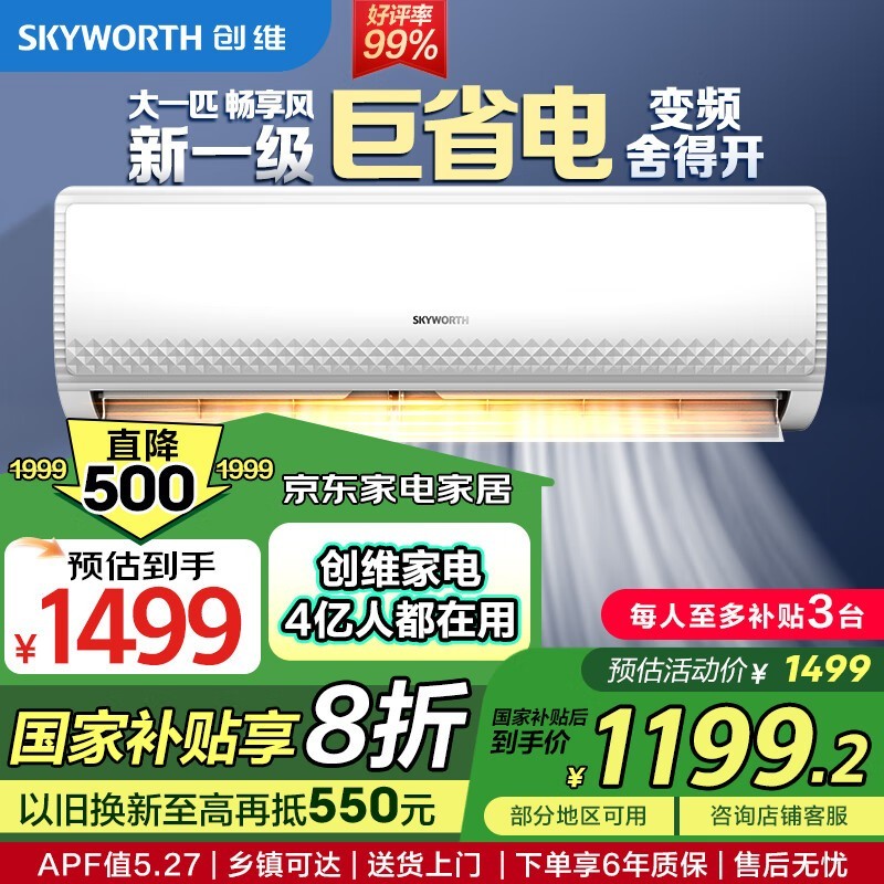 创维大1匹畅享风空调挂机促销,低至1194元