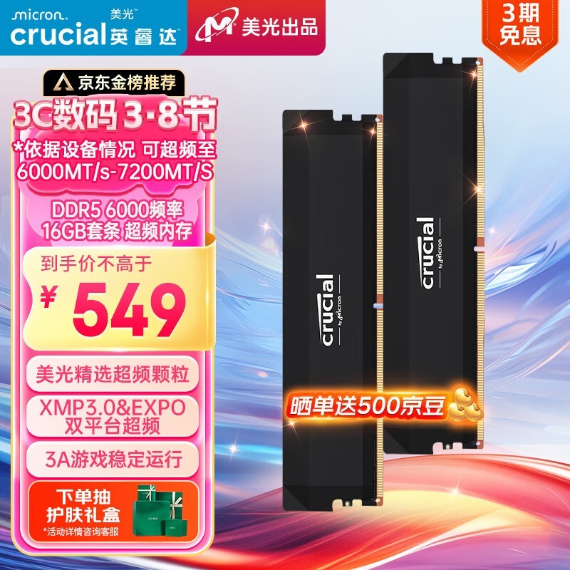 Crucial Pro 32GB DDR5 6000MHz内存条京东优惠价