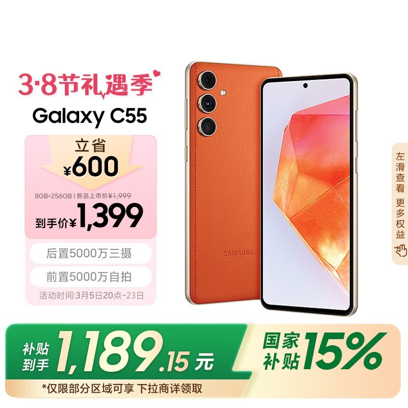 三星Galaxy C55 5G手机8GB+256GB缤纷橙5G智能手机