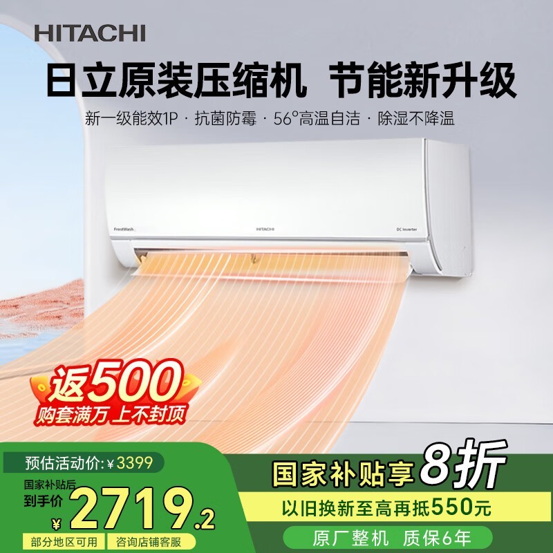 日立白熊君壁挂空调1匹新一级能效智能舒适家居生活