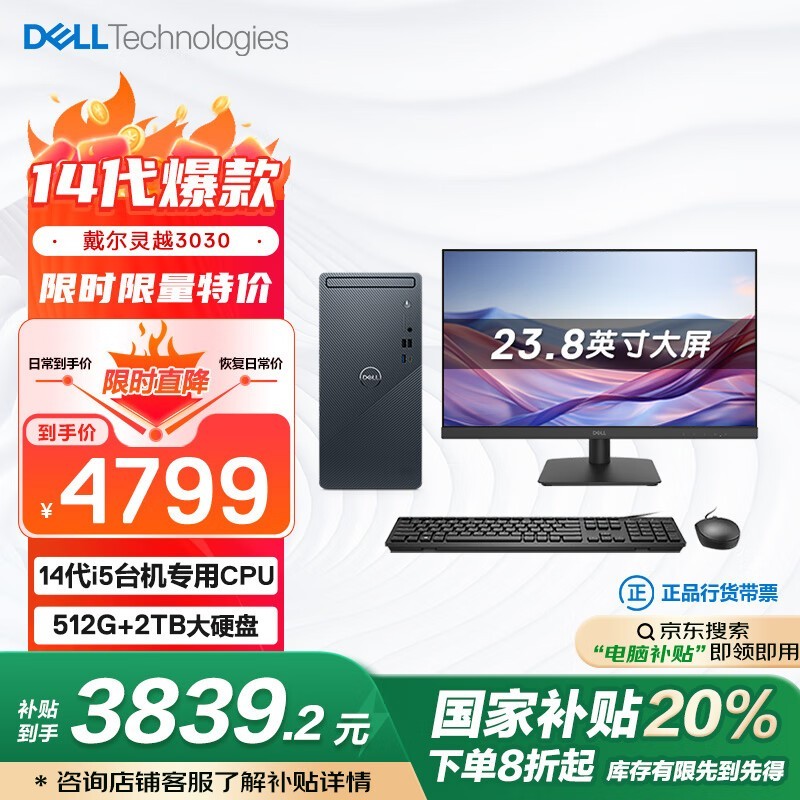 戴尔灵越3030台式电脑i5-14400京东到手3820元