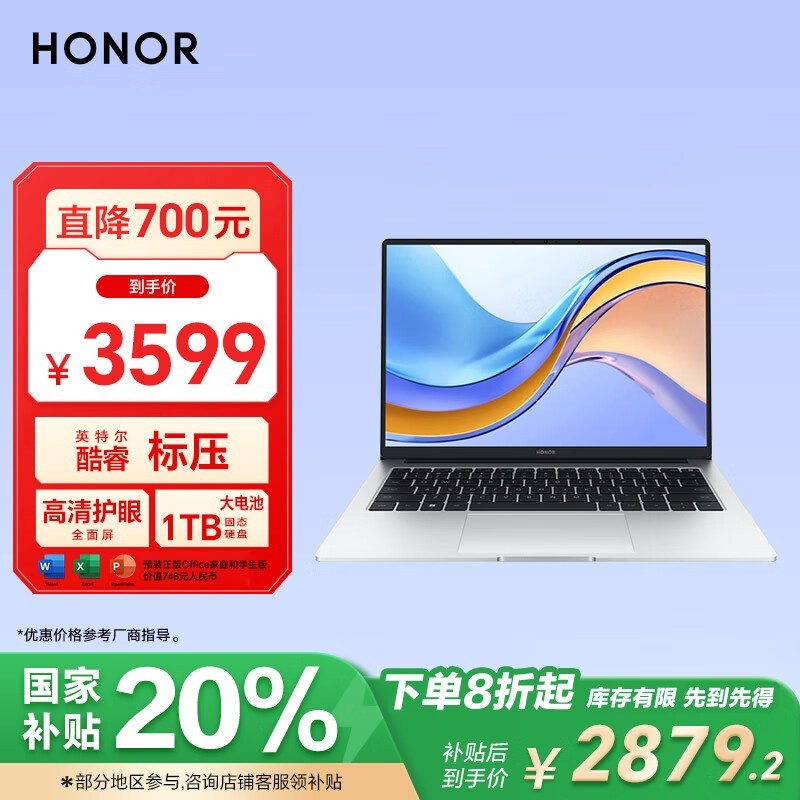 荣耀HONOR MagicBook X14轻薄本12代酷睿i5京东特惠2864元