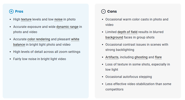 由于曝光良好、动态范围广、色彩漂亮、噪点低,该机的视频性能也相当出色,然而,在场景变化时的曝光和色彩适应、自动对焦和纹理方面,无法与最佳竞争对手相提并论。