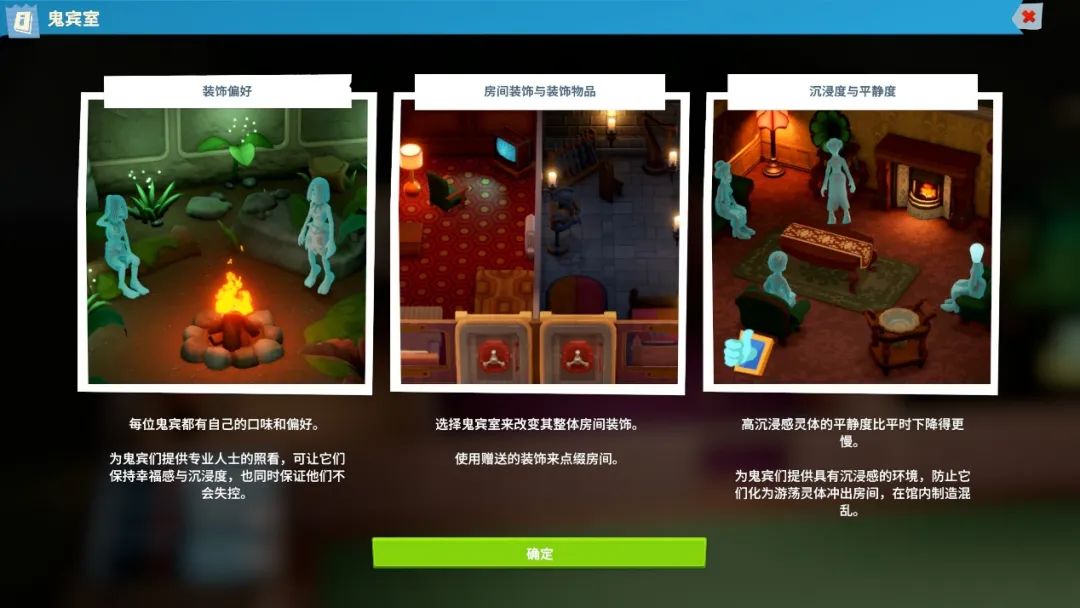 这趟漫长的旅行里,你可以从不同的博物馆主题中感受到全新的游戏机制:比如,在超自然博物馆里,玩家需要好好应对这些超自然展品应运而生的幽灵,建好“鬼宾室”好吃好喝地供着这些可能来自维多利亚时代的祖宗,以方便现代后人观瞻。