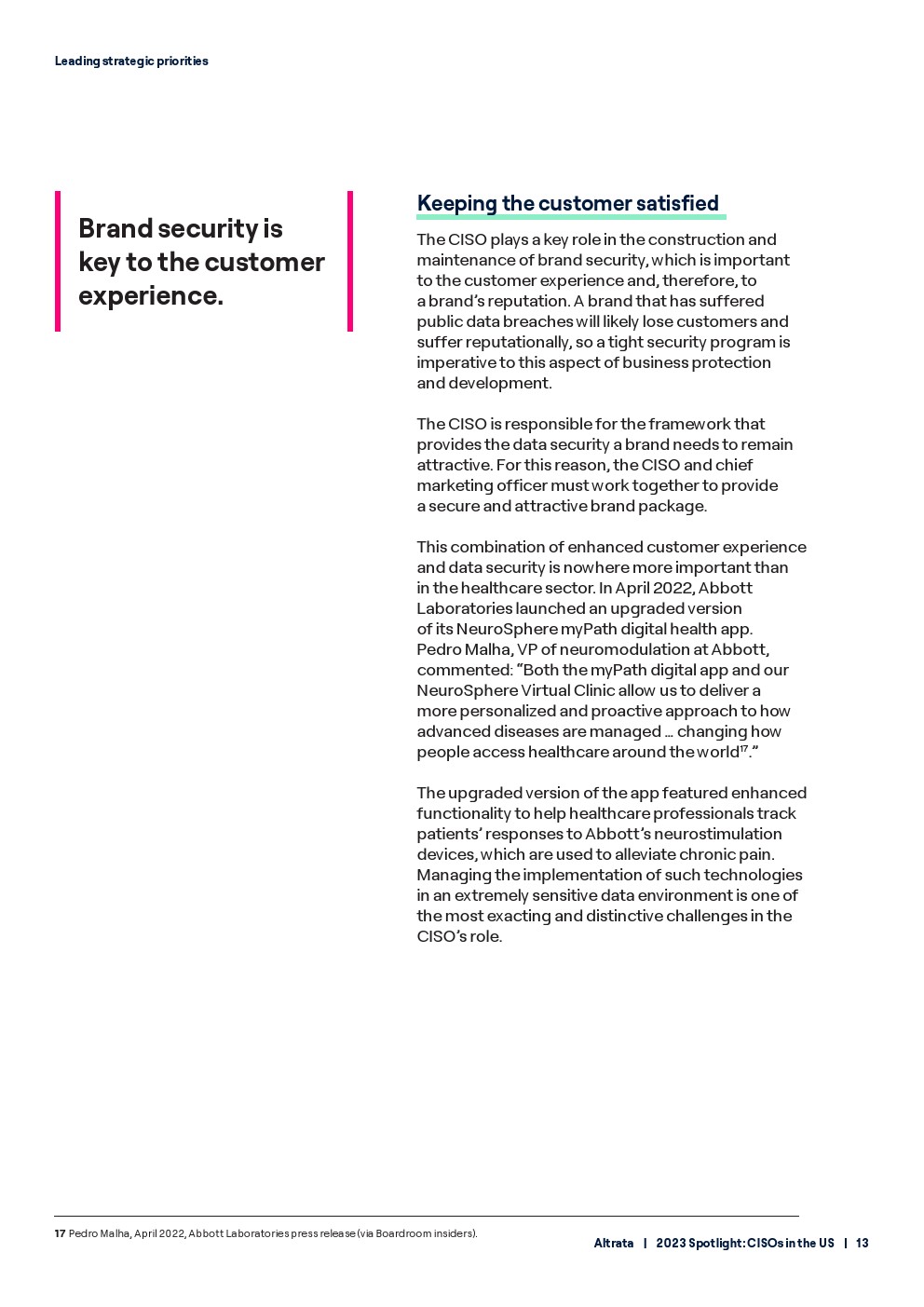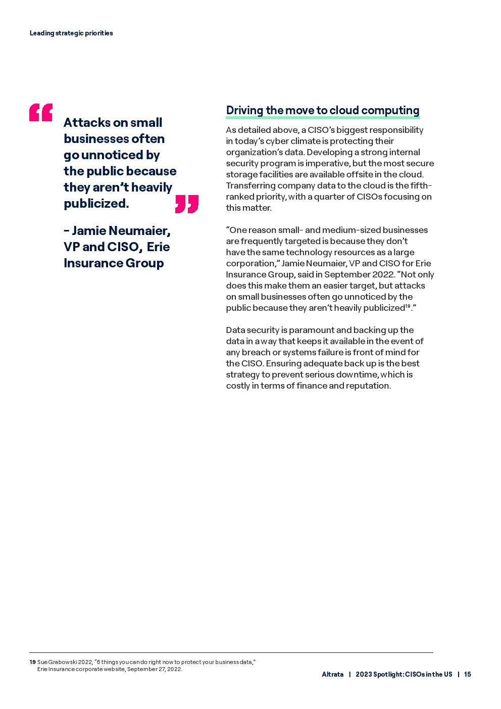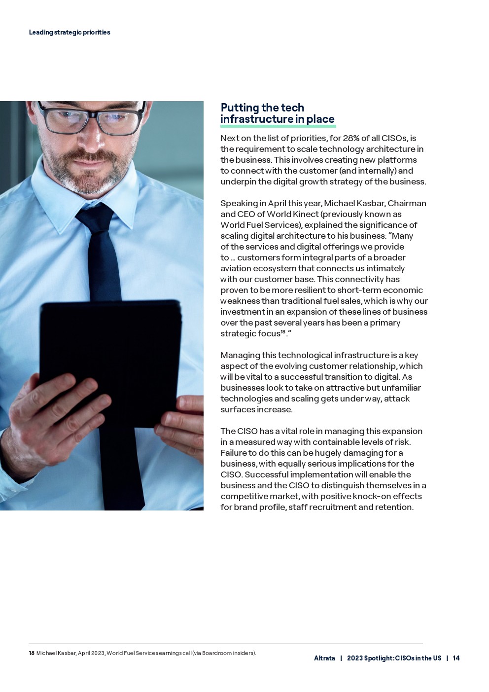 在2023年中期,创新和促进增长的需求是首席信息安全官的首要任务。调查发现,55%的首席信息安全官专注于创新;约1/3的首席信息安全官优先考虑客户体验、发展业务和扩展技术基础设施。