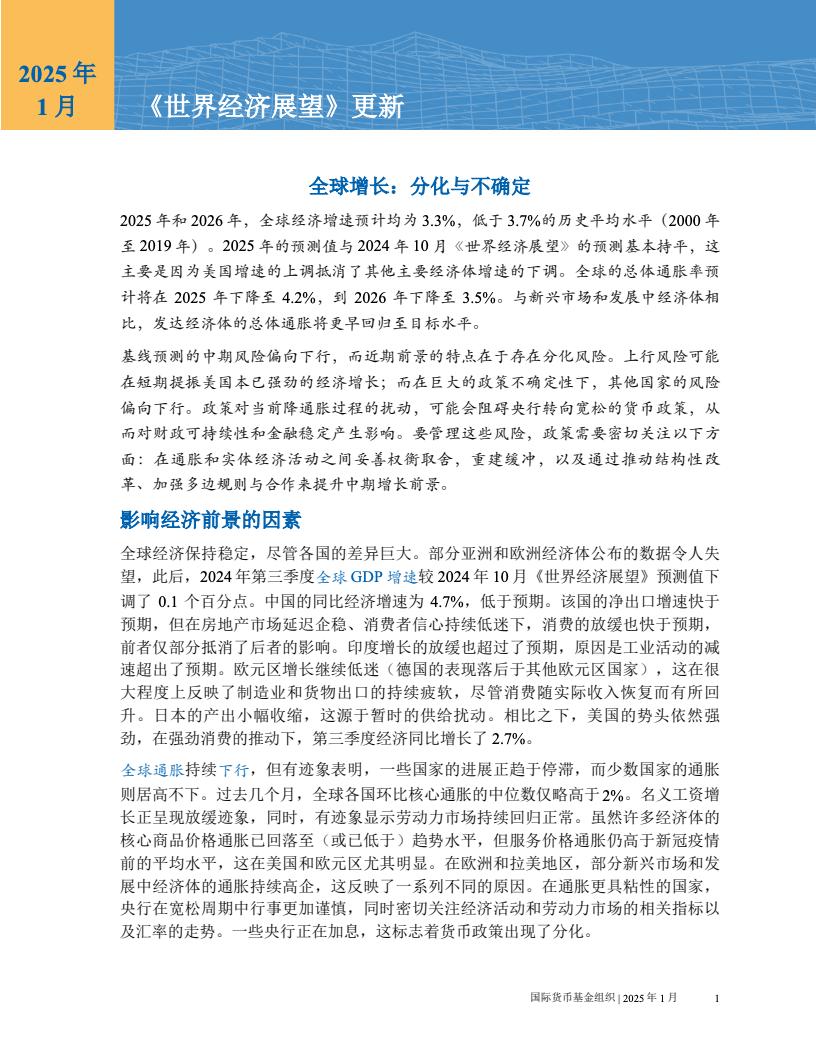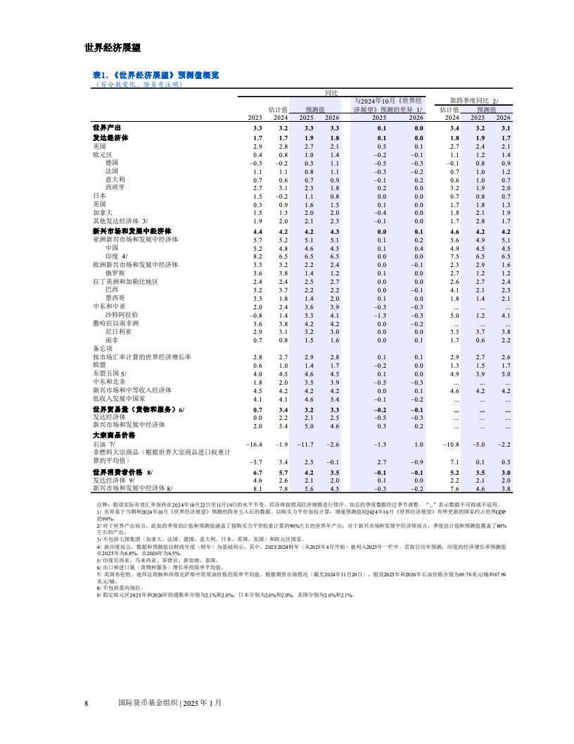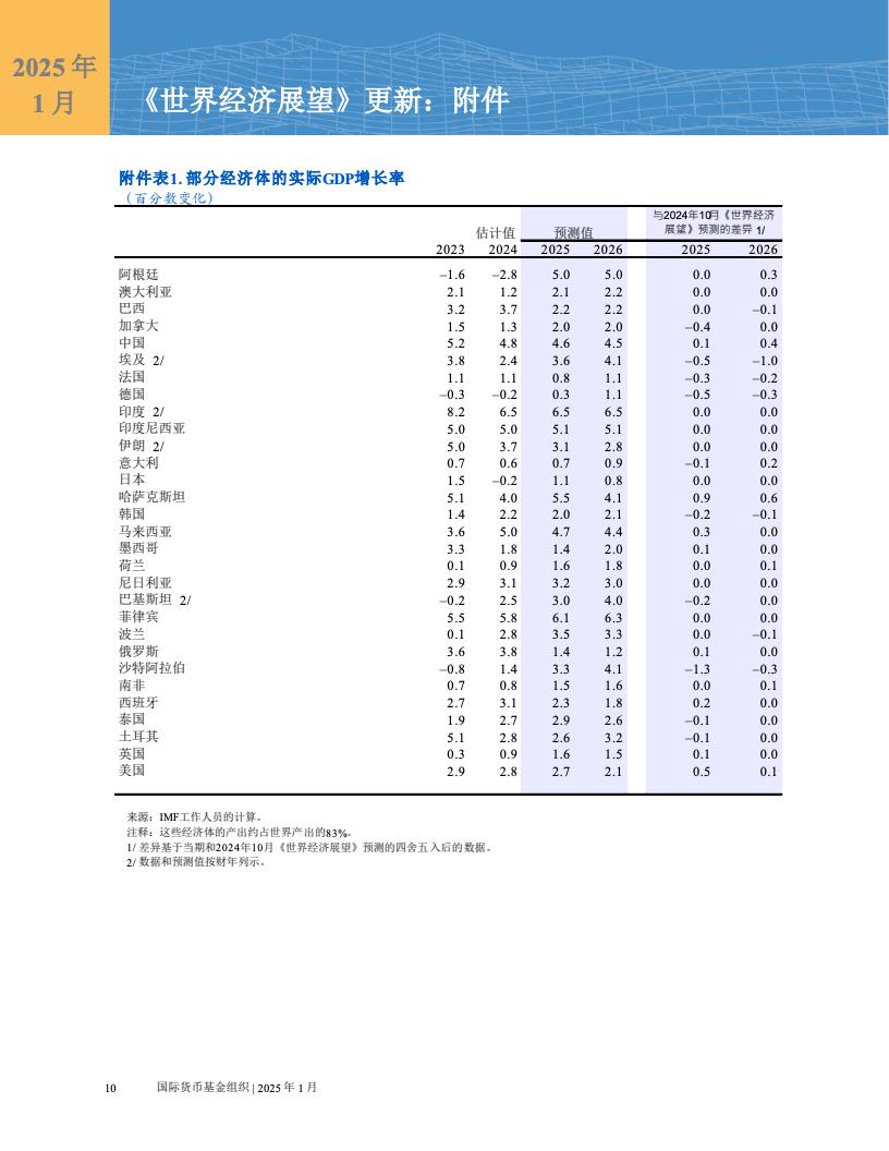 虽然全球增长前景相比去年10月预测基本未发生变化,但各国的分化正在扩大。在发达经济体中,由于国内需求持续保持强劲,美国的经济增速高于此前的预测水平。我们将美国今年的增速预测值上调了0.5个百分点,至2.7%。