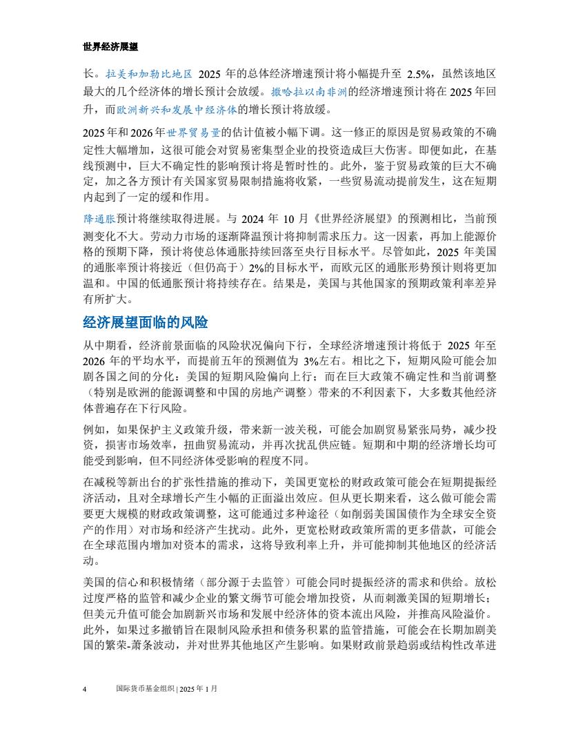 近期风险可能加剧经济体间的分化。中期来看,美国财政刺激的正面效应或将减弱,若财政脆弱性增加,甚至可能转为负面。通过放宽监管减少行政束缚并促进创新,有望提升中期潜在增长率。过度放宽监管可能削弱金融安全网,加剧金融系统脆弱性,使美国经济陷入繁荣-衰退的恶性循环。同时,限制性贸易措施与严格的移民政策或将加剧中长期经济风险。