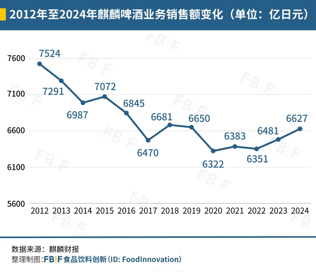 目前,由啤酒起家的麒麟仍然手握着庞大的酒类业务。2024年麒麟酒类的销售额达到1.08万亿日元,在整体营收中占比达到46.2%,其中,啤酒业务的营收达到6627亿日元,利润达到751亿日元。2022年,麒麟在日本啤酒市场上的份额达到35.7%,仅次于朝日(36.5%)。既然如此,麒麟为什么急于摆脱其“啤酒公司”的定位?