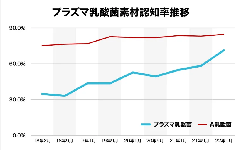 根据麒麟分享的数据,日本消费者对血浆乳酸菌的认知度从2018年的30%左右提高到了2022年的70%。这侧面反映出麒麟在提高血浆乳酸菌的市场普及度上的成果。