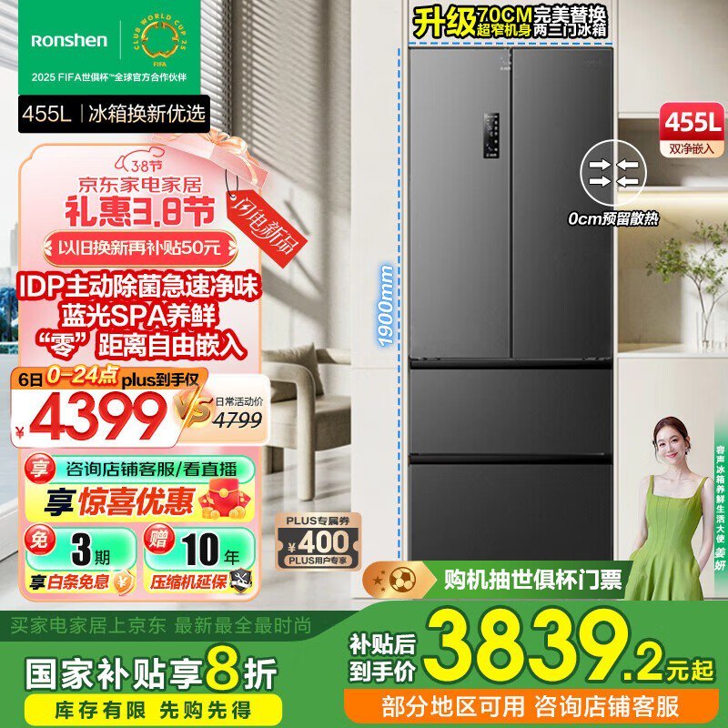 容声455升法式多门冰箱一级能效变频除菌静音节能省空间