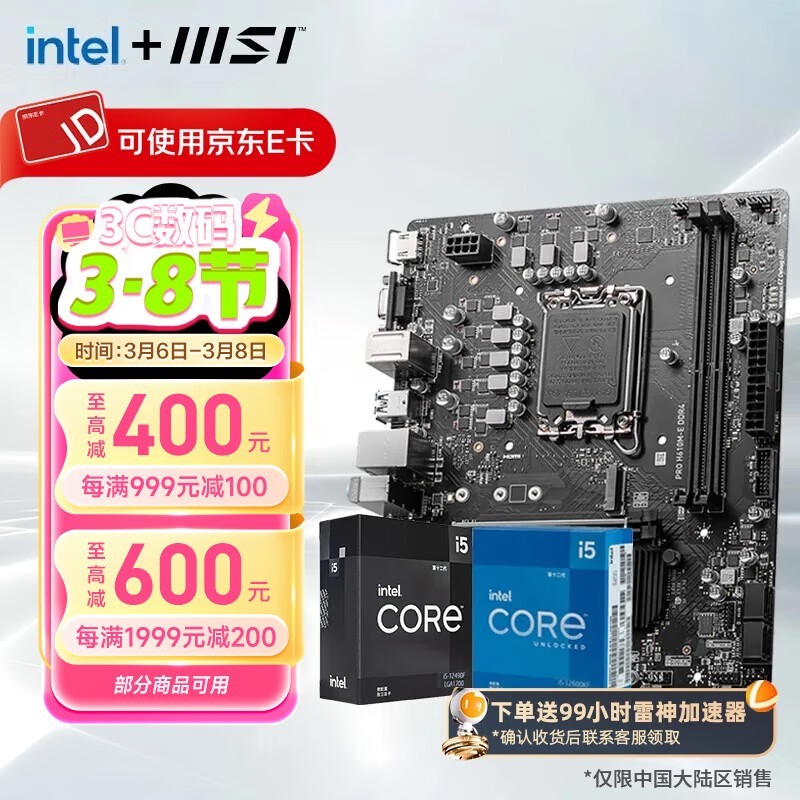 微星i5 12400F散片主板套装京东优惠价1019元