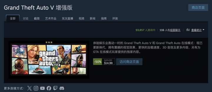 近日,《GTA 5》PC 增强版已正式发售,Steam 首发 5 折优惠(截止至 3 月 21 日),国区首发价 71.25 元,此外还有 206.25 元的「增强版 + 鲨鱼卡」捆绑包。