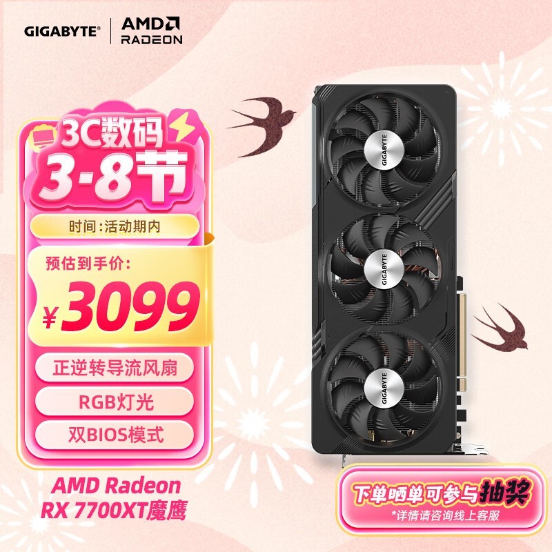 技嘉RX 7700 XT魔鹰显卡京东好价3082元到手
