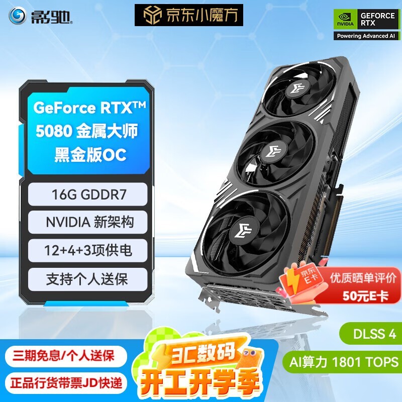 影驰RTX5080金属大师黑金版16GB京东特惠10499元