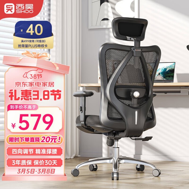 西昊M18人体工学电脑椅京东促销到手仅485元