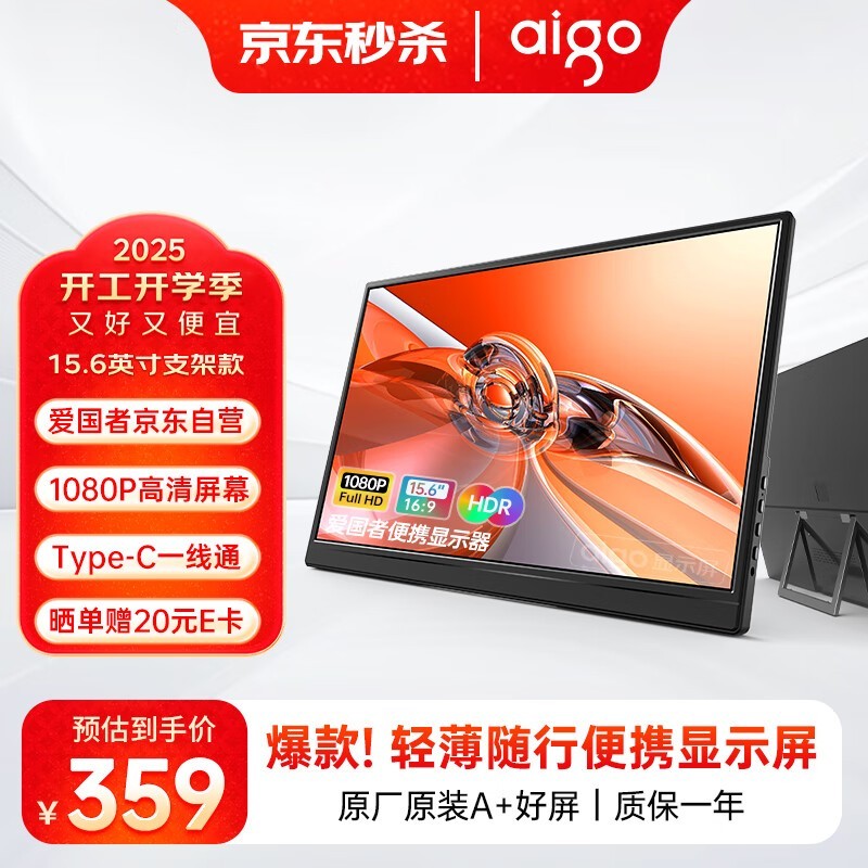 爱国者15.6英寸便携显示器隐形支架款轻薄设计