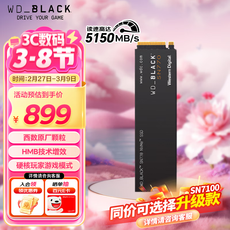 西部数据SN770 2TB固态硬盘京东促销价889元