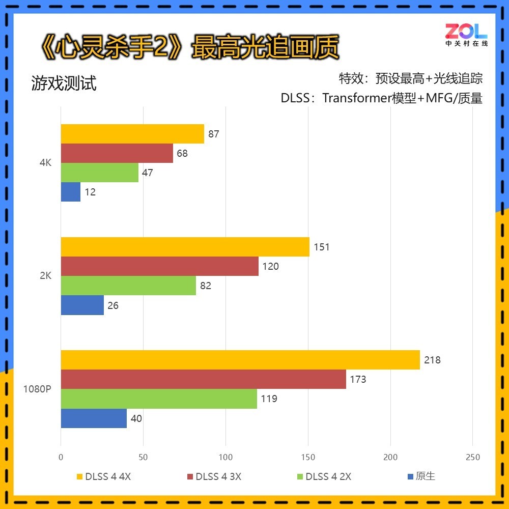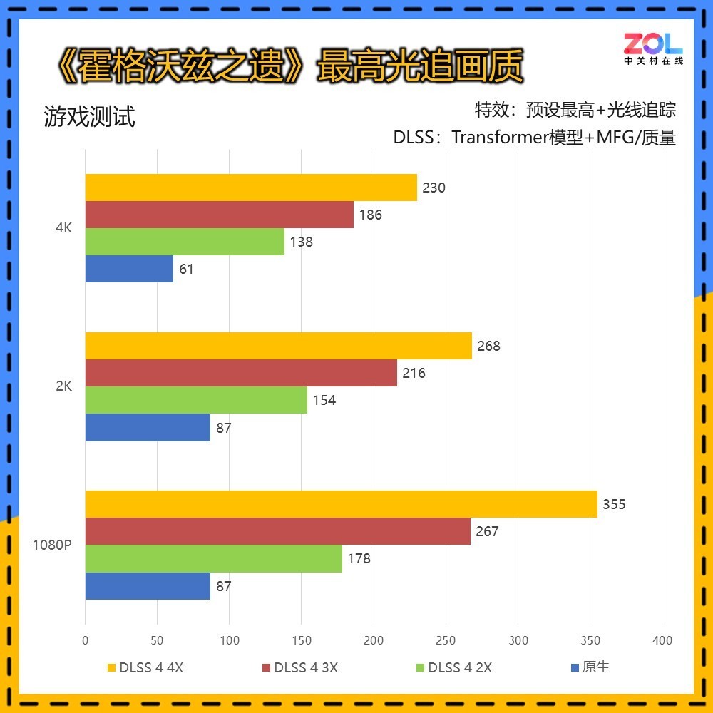 这里值得一提的是,或许是游戏优化或驱动更新的原因,此次DLSS 4 4X测试相比RTX 5080时测试帧数更高。