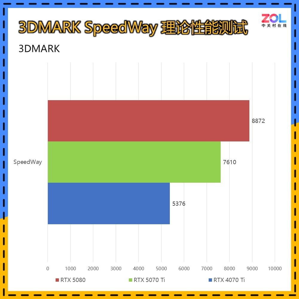 RTX 5070 Ti 16GB对比RTX 4070 Ti,提升为42%。从SpeedWay中不难看出,新架构在次世代3A游戏中,面对光照、粒子等后处理效果,提升会非常大。