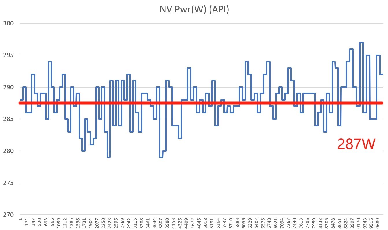 可以看到RTX 5070 Ti 16GB的平均功耗为287W左右。