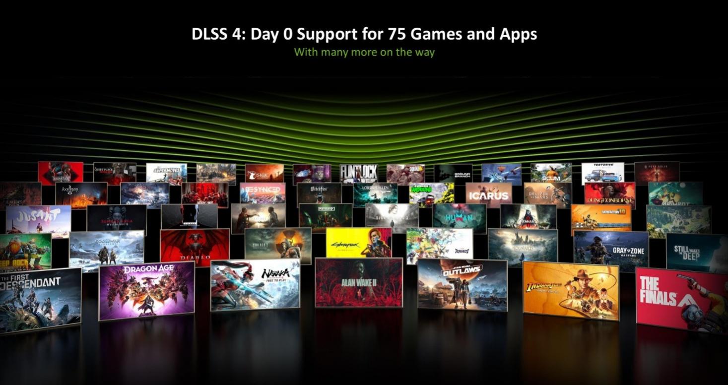 本次DLSS 4在解禁首日,便可支持75款游戏或应用。除了游戏中首发支持外,对于尚未集成的游戏,可在NVIDIA app中进行直接调节非常方便。